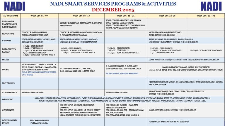 7 September 2025 🎉 Program Khas Merdeka & Hari Malaysia @ NADI 🎉 Jom ramai-ramai datang ke NADI Kampung Jemapoh untuk sambutan istimewa sempena Hari Merdeka & Hari Malaysia @ NADI 📅 Tarikh: 7 September 2025, Ahad🕙 Masa: 10.00 pagi […]