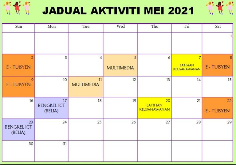 Jadual Aktiviti Mei 2021 PIK Kg Jemapoh