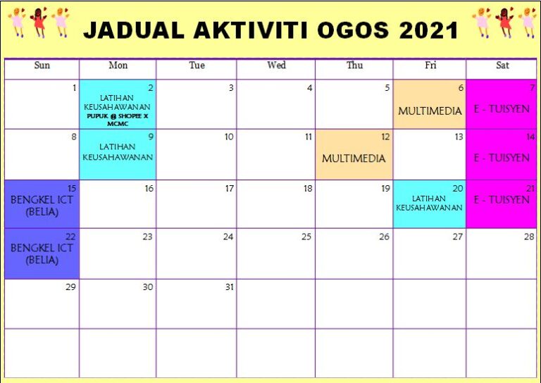 Jadual Aktiviti Ogos 2021 PIK Kg Jemapoh