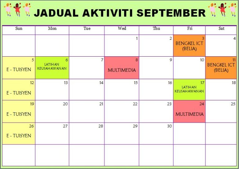 Jadual Aktiviti September 2021 PIK Kg Jemapoh