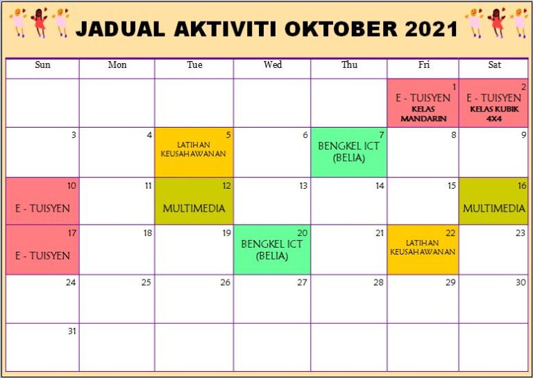 Jadual Aktiviti Oktober 2021 PIK Kg Jemapoh