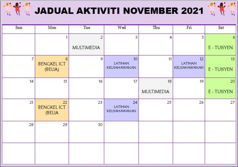 Jadual Aktiviti November 2021 PIK Kg Jemapoh
