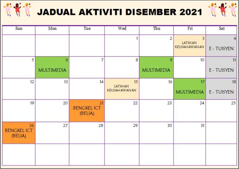 Jadual Aktiviti Disember 2021 PEDi Kampung Jemapoh