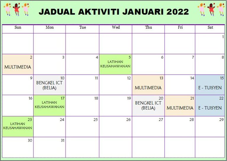 Jadual Aktiviti Januari 2022 PEDi Kampung Jemapoh