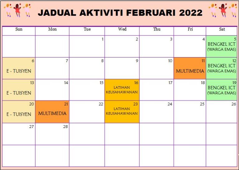 Jadual Aktiviti Februari 2022 PEDi Kampung Jemapoh