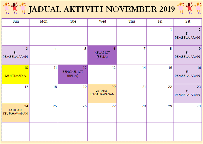 Jadual Aktiviti November 2019 PI Kg Jemapoh