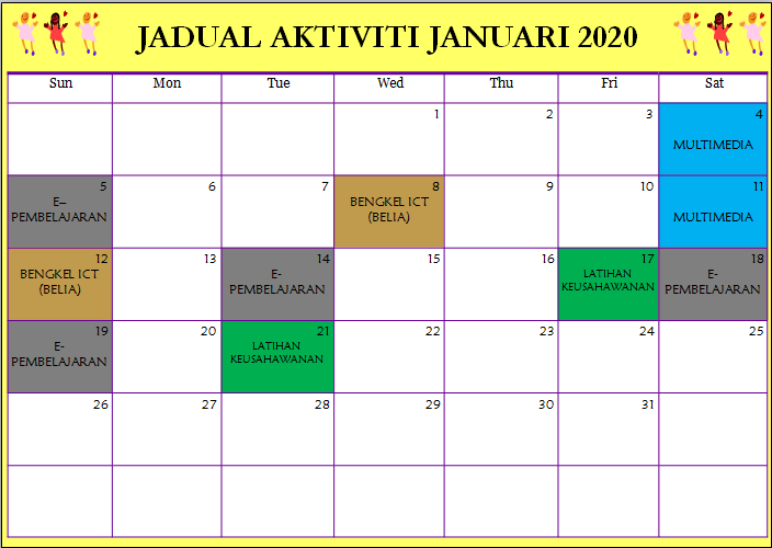 Jadual Aktiviti Januari 2020 PI Kg Jemapoh