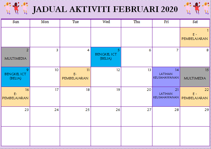Jadual Aktiviti Februari 2020 PI Kg Jemapoh