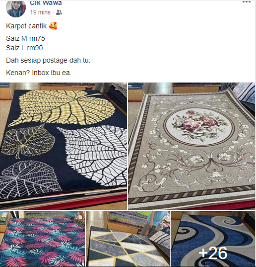 Nama : Siti Salwa Binti Zainal Kategori Servis : Meniaga Secara Atas Talian (Agen Karpet)